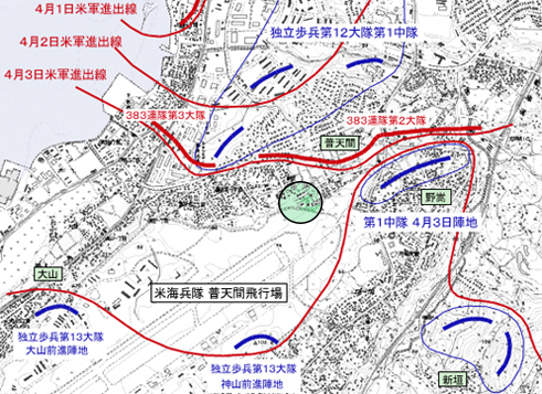 普天間第二小学校付近を通過したのは米第96師団第383連隊第2大隊であった。