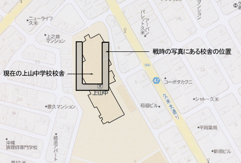 上山中学校は昭和20年5月27日から28日にかけて戦場となった。