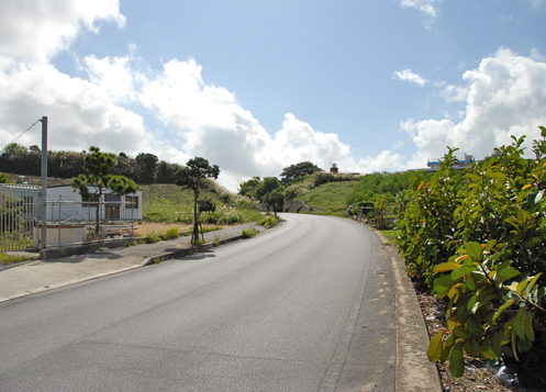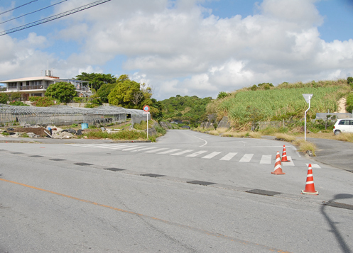 写真右 : 爆発事故現場を北から見たもの。 堀割(切り通し)への登り坂となっていることがわかる。 |