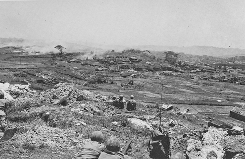 | 独立第2大隊・機関砲第103大隊等の守備する天久台は5月13日に台上を完全に制せられ、15日には馬乗り攻撃を受けて全滅した。当時の写真ではその天久台頂上部から東側に広がる独立混成第15連隊第2大隊の西側陣地