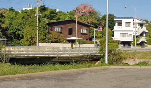 | 映っている兵士は完全武装であるものの、吊れ銃状態であることから日本軍との交戦を想定していない4月2日以降の撮影と思われる。海兵隊の資料から、この比謝北橋地区は4月1日にはすでに第1海兵師団第5海兵連隊が進撃している。 この地区は水が豊富であり、比謝川を中心として周囲には湧き水が多い。そのために中飛行場(現 嘉手納空軍基地)の設営部隊や航空支援部隊が、この比謝川流域に配置されていた。しかしながら重火器を保持していない部隊であり、ほとんど抵抗することなく1日のうちに国頭方面へ転進することになった。 撮影位置は一見すると近すぎるように感じられるが、国道58号線が4車線道路となって手前側に拡張されているために、そのように見えている。 なお、この撮影場所は現在沖縄県企業局北谷上水管理事務所の施設となっているため、許可を頂いた上で撮影したものである。 |