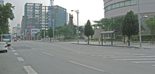 当時の写真の中央部に立つ建物が那覇警察署である。現在の写真では中央部に茶色の時計台が見えるが、この場所に警察署が位置した。現在の写真で右に見える建物が「沖縄県議会棟」で、この敷地内に「武徳殿」があった。また手前には広い道路が見えているが、当時は道路はなく、那覇警察署の場所が三叉路であった。