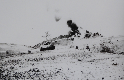 | 4月19日に牧港から侵入した米陸軍はその後も進撃を続け、城間地区での戦闘終了後に海兵隊と交代となった。それまで北部地区で日本軍と交戦してきた米海兵隊は遅々として進まない陸軍に対して 「腰砕けの陸軍に変わって海兵隊がカタを付ける」 という気持ちでこの戦場に加入してきた。その際に最初に遭遇したのがこの 「Hill 60」 の戦闘であった。 担当の第1海兵連隊第2大隊F中隊は5月6日に通常の攻撃手順によって正面から進撃した。一旦はこの高地上に立つことができたが、それと同時に北側にある「Nan Hill」 という小さな高地から側面射撃を受けるとともに、対戦車火器により随伴の戦車部隊は瞬時に撃破されて窮地に陥り、わずか半日で撤退を余儀なくされた。翌7日も同じ攻撃方法で大きな損害を受け、初めて海兵隊は日本軍の強靱さに気づかされることになったのである。結局この丘の攻略に4日間を要し、甚大な死傷者を生じたことによって海兵隊はそれ以降の戦術を決定的に変更せざるを得なくなった。 この日本軍名50m閉鎖曲線高地付近は現在では急速に宅地化されマンションの林立する一帯に変貌した。その場に立っても坂があることで高台であることに気づく程度で、北側にあった「Nan Hill」 に至ってはすでに傾斜も感じられないほど平坦地になってしまった。近所の主婦達が立ち話をし、まわりで子供達が遊ぶその姿からは60数年前の激戦は全く感じることができない。 現在の撮影場所は、当時の写真の中の火焔戦車の右後方約10m付近だと思われる。 当時の撮影場所からの撮影を試みたが、林立するマンションなどにより、どうしても同じ位置に立つことは出来なかった。 この写真は沖縄の各種資料館等で使用されるが、正確な説明がなされたものは全くなく、那覇市の戦闘や首里などと記述されているのが大半である。 |