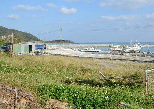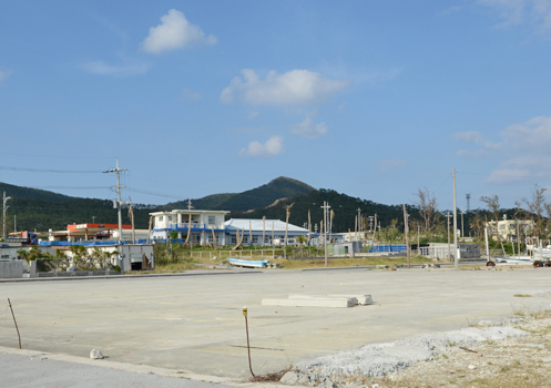 | 6月5日撮影。 レッドビーチ裏手の集積場とされる。 現在の写真の奥に小さくガソリンスタンドが見える。