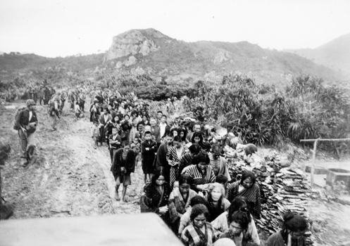 当時の写真ではその位置に錯雑とした小さな丘が見え、これが 「監視下の地元住民の方々」