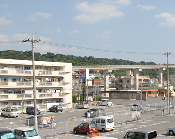 | 首里末吉地区は大名丘陵の南側にある渓谷で、中央を流れる安謝川を中心とした防御側に非常に有利な地形であった。安謝川を伝って東進すれば、日本軍司令部のある首里市街地の北側に到達出来るため、米海兵隊はこの渓谷を突き進み、大名丘陵や石嶺丘陵を守備する日本軍の背後に進出して、この地区の日本軍守備部隊を一気に瓦解させようと企図した。 しかしながら、守るに易いこの地形の低地部を進出しようとする海兵隊は、日本軍の格好の目標となり、最終的には大がかりな攻撃を実施することは出来なかった。末吉地区からの進出を阻止された海兵隊は、更に南進して首里市街地を背後から攻撃したが、結果としてこれが日本軍の意表を突く形で5月29日に首里突入が成功している。 当時の写真に見える丘陵は大名丘陵の南側斜面で、判別しにくいが中央部に末吉集落がある。見ての通り、中央低地部を写真右方向に進む米軍にとっては、日本軍の攻撃を避けるものもない地形であった。 現在は安謝川を中心として両側には住宅地が立ち並び、中央には首里まで伸びるモノレールが建設された。写真は当時の撮影ポイントとほぼ同じ場所からの撮影となる。 なお、この地区の名称を米軍は「Wana-draw」(大名渓谷)、末吉集落を「Wana」(大名)と称しているが、正確には末吉渓谷・末吉集落が本来の名称である。 |