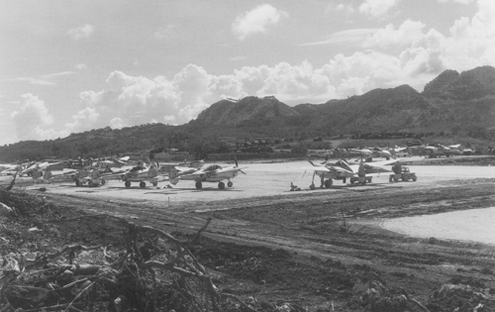 | 本部飛行場は、別名 「桃原飛行場」 とも呼ばれ、1945年(昭和20年)6月に建設された日本本土へ向けた偵察用航空機の飛行場であった。戦後は兵站物資の集積所や演習場として使用されることもあったが、沖縄本島の航空基地の統一運用によって嘉手納基地(空軍)と普天間基地(海兵隊)以外は閉鎖された。そして最終的には1971年(昭和46年)に日本へ返還されて現在に至っているが、原状回復義務が日本側にも米国側にも課せられていないため、放置された状態で現在に至っている。跡地利用について跡地利用調査委員会なども立ち上げられたが、強制接収した土地の地籍さえ割り出すのが困難であり、リゾート計画や自衛隊施設の建設などの話しも立ち上がっては消えてしまった。ここにはまだ複雑な沖縄戦の影が残されているのである。 写真は背景の山並みからほぼ同じ場所だと思われる。強固な耐性を持つコンクリート製の滑走路も放置されたまま雑草が生え、駐機場などは樹木に覆われてその姿を消しつつある。 |