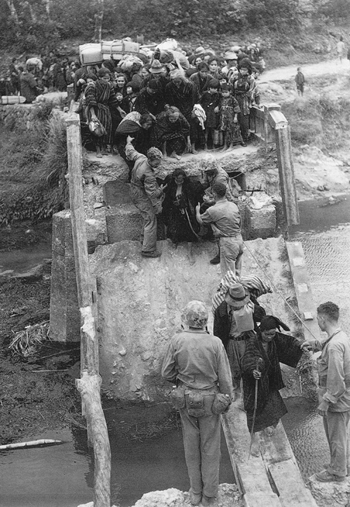 宇堅橋を正面から見た写真である。「宇堅橋1」で写っている米兵が同じ人物であることから、この2枚の写真はほぼ同時間に撮影されたことがわかる。この写真は南から北に向かって撮影したものである。